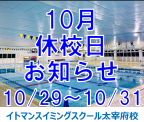 10月月末休校日のお知らせ イトマンスイミングスクール太宰府校(2025年9月15日)