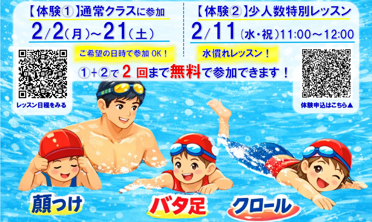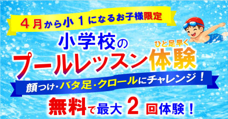 4月から小1になるお子様限定!2回まで水泳無料体験