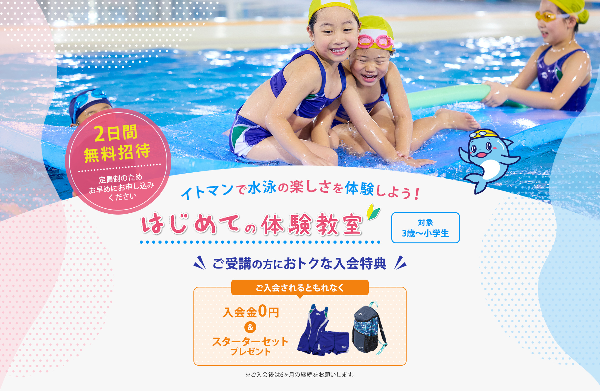 泳ぐ楽しさ、プールの環境をじっくり体験してほしいから、2日間開催しています。