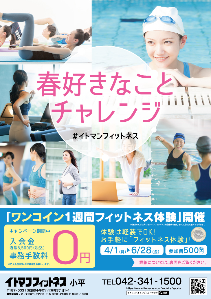 皆さんこんにちは!イトマンスイミングスクール小平校では4月1日より