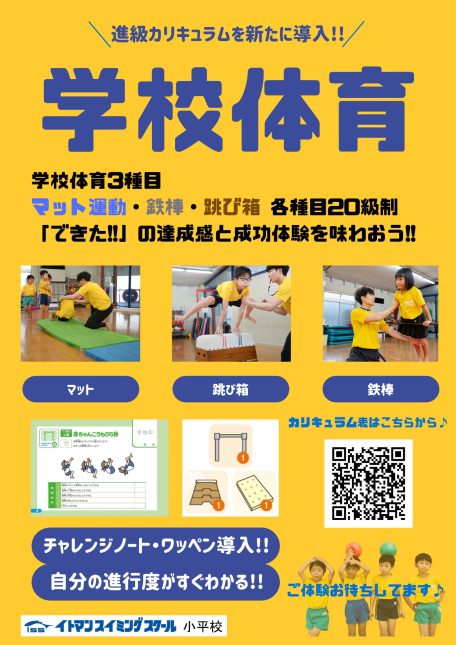 皆様こんにちは!イトマン小平で人気のクラス「学校体育」がリニューアルして生まれ変わります☆