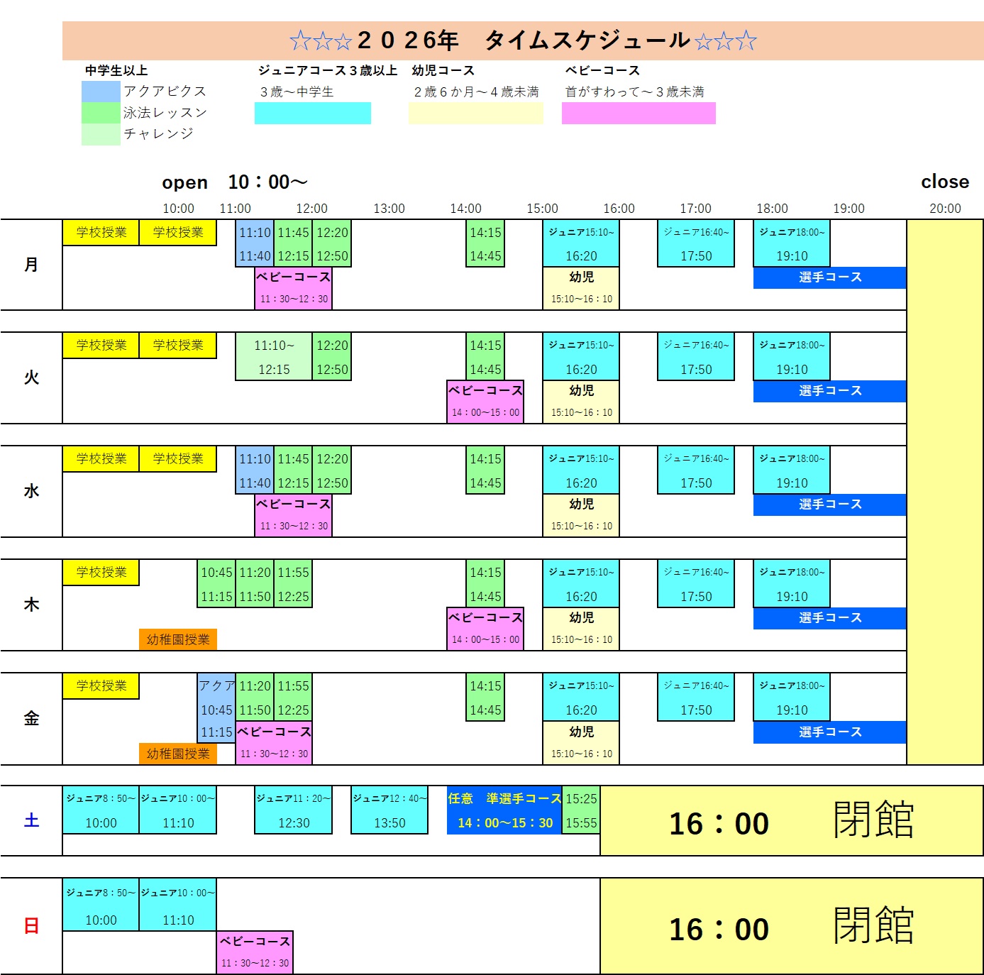 > スイミング カレンダー