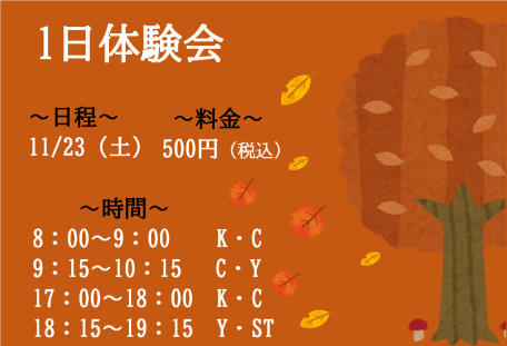 11/23(土)に実施する1日体験会のお知らせです!