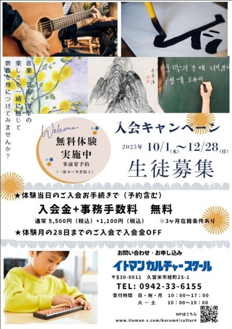 10月・11月・12月限定 お得な入会キャンペーン(カルチャースクール)のご案内です♪