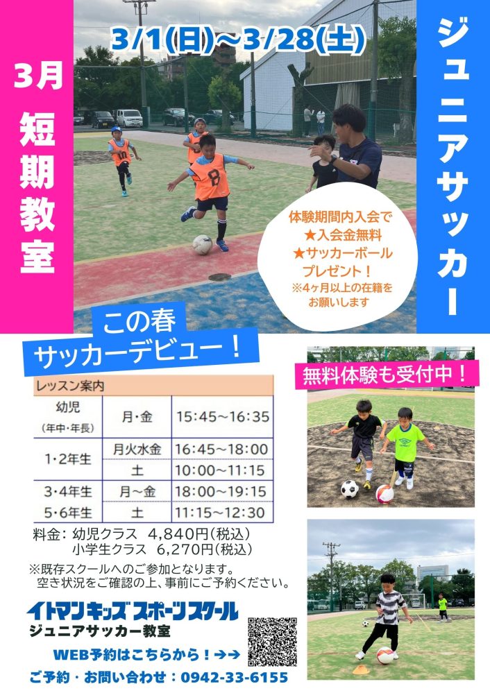 ジュニアサッカー★3月1ヶ月短期教室★