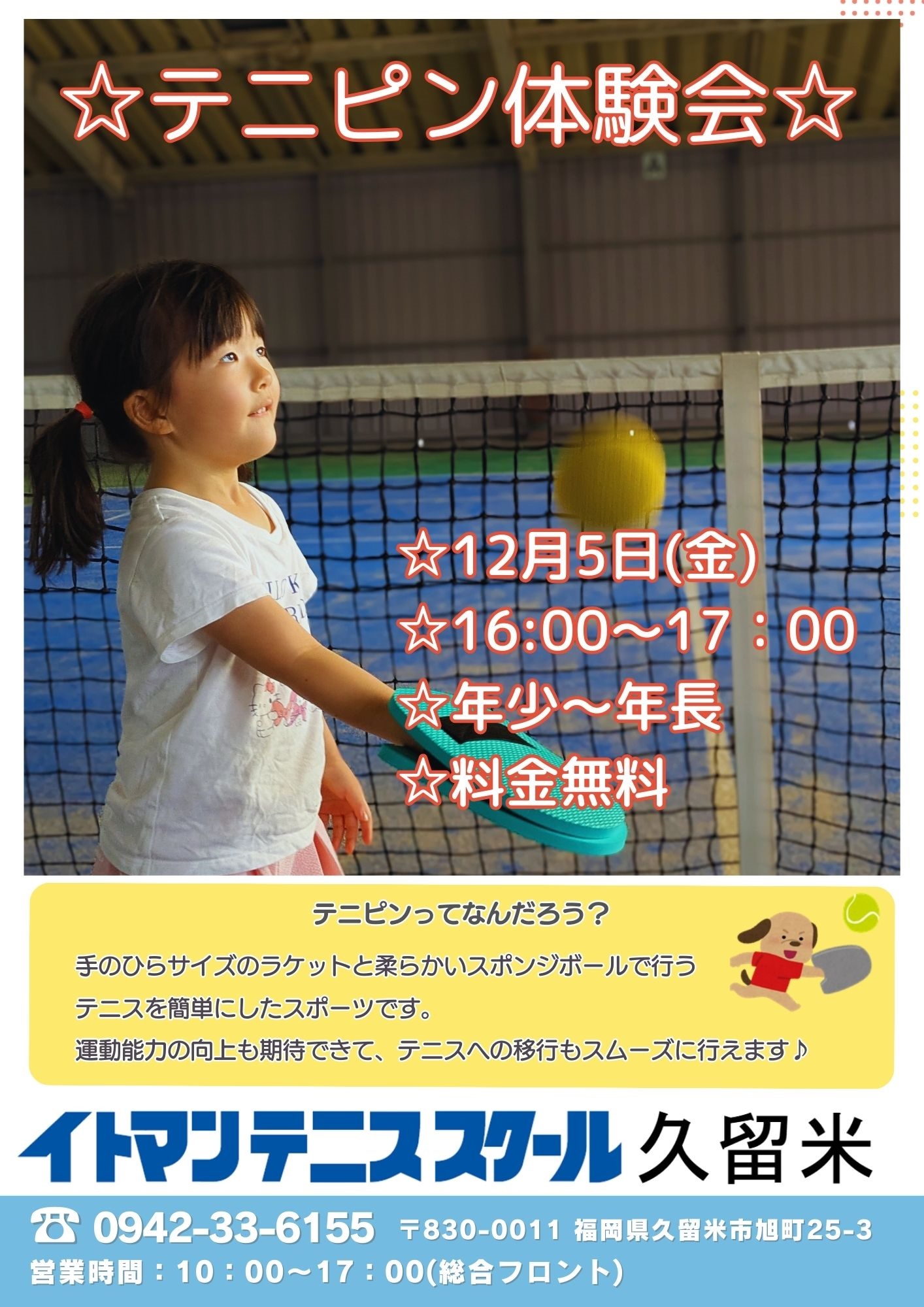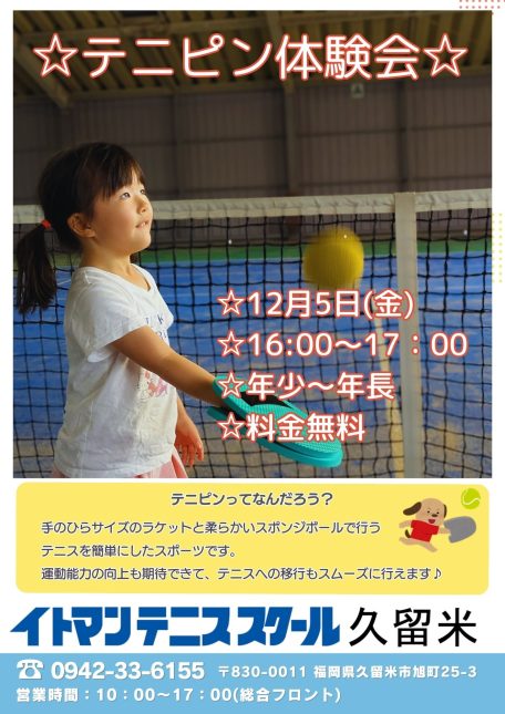 テニピン体験会のお知らせ(幼児対象)