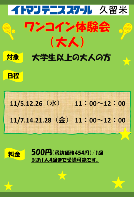 ★☆★☆★☆ ワンコイン体験会詳細 ★☆★☆★☆