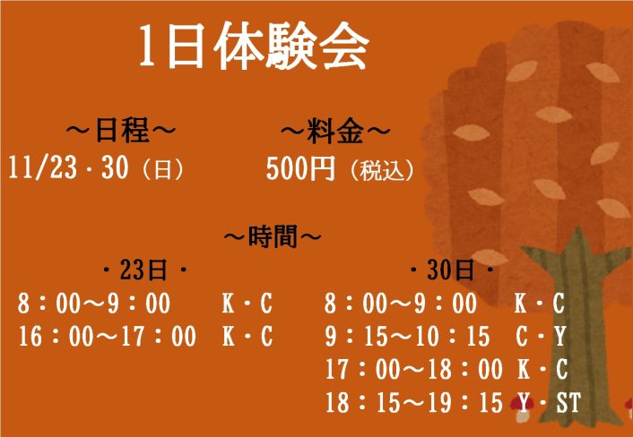 今日は11月に実施する体験会のお知らせです!