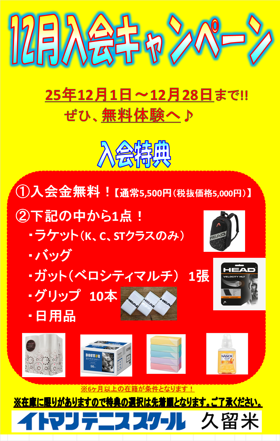 【テニス】12月 入会キャンペーンのお知らせ!