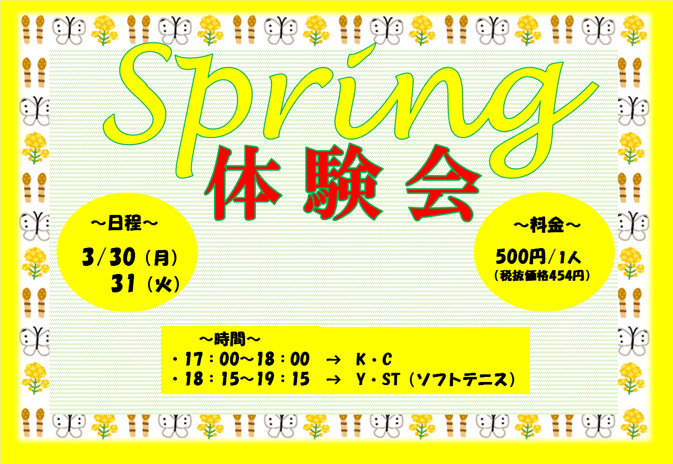 3月 1日体験実施のお知らせ!