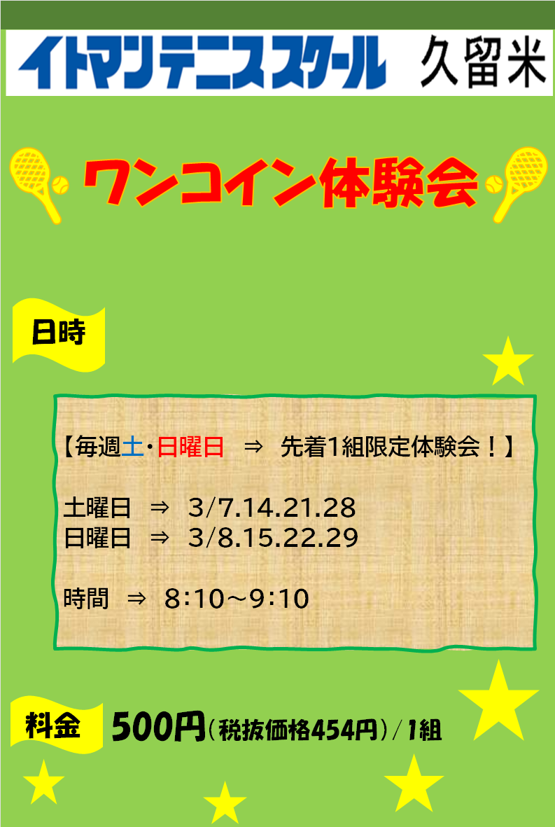 3月 先着1組限定体験会実施のお知らせ!
