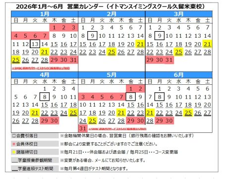 > スイミング カレンダー