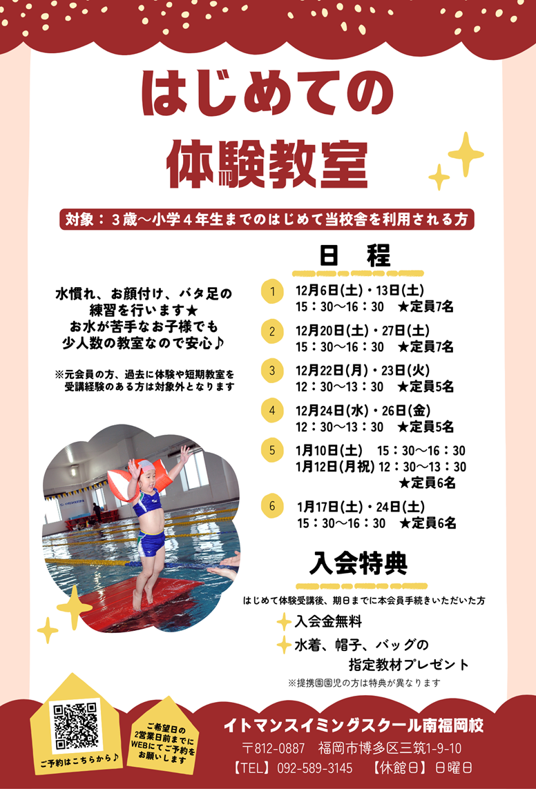 はじめての体験教室開催!☆イトマンスイミングスクール南福岡校