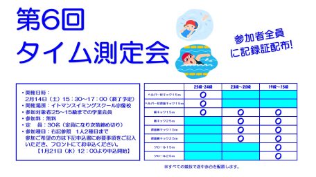 この機会に日頃練習している泳ぎのタイムを測ってみませんか!