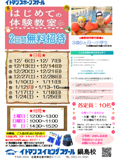 イトマンスイミングスクール鍋島校までお尋ねください。
