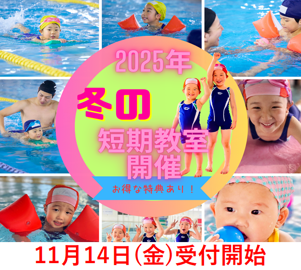 かっこよく泳げるようになりたい!水嫌いを克服したい!親子でスイミングデビューしたい!水慣れしたい!運動してストレス発散したい!などなど…目標がある方は、ぜひ入会特典もお得な冬の短期教室から始めてみてはいかがでしょうか?