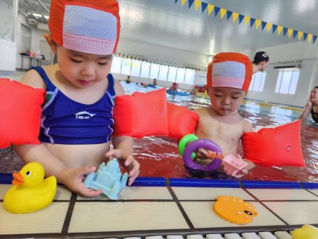 2歳半から3歳のお子様が対象のリトルキッズクラスは、パパ・ママから離れて一人でプールに入ります🎵