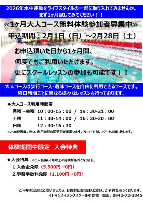 イトマンスイミングスクール はじめて体験教室はいかがですか😚💓