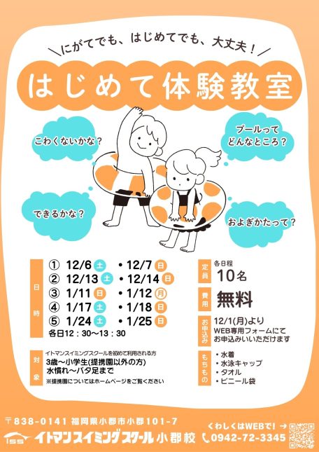 イトマンスイミングスクール はじめて体験教室はいかがですか😚💓