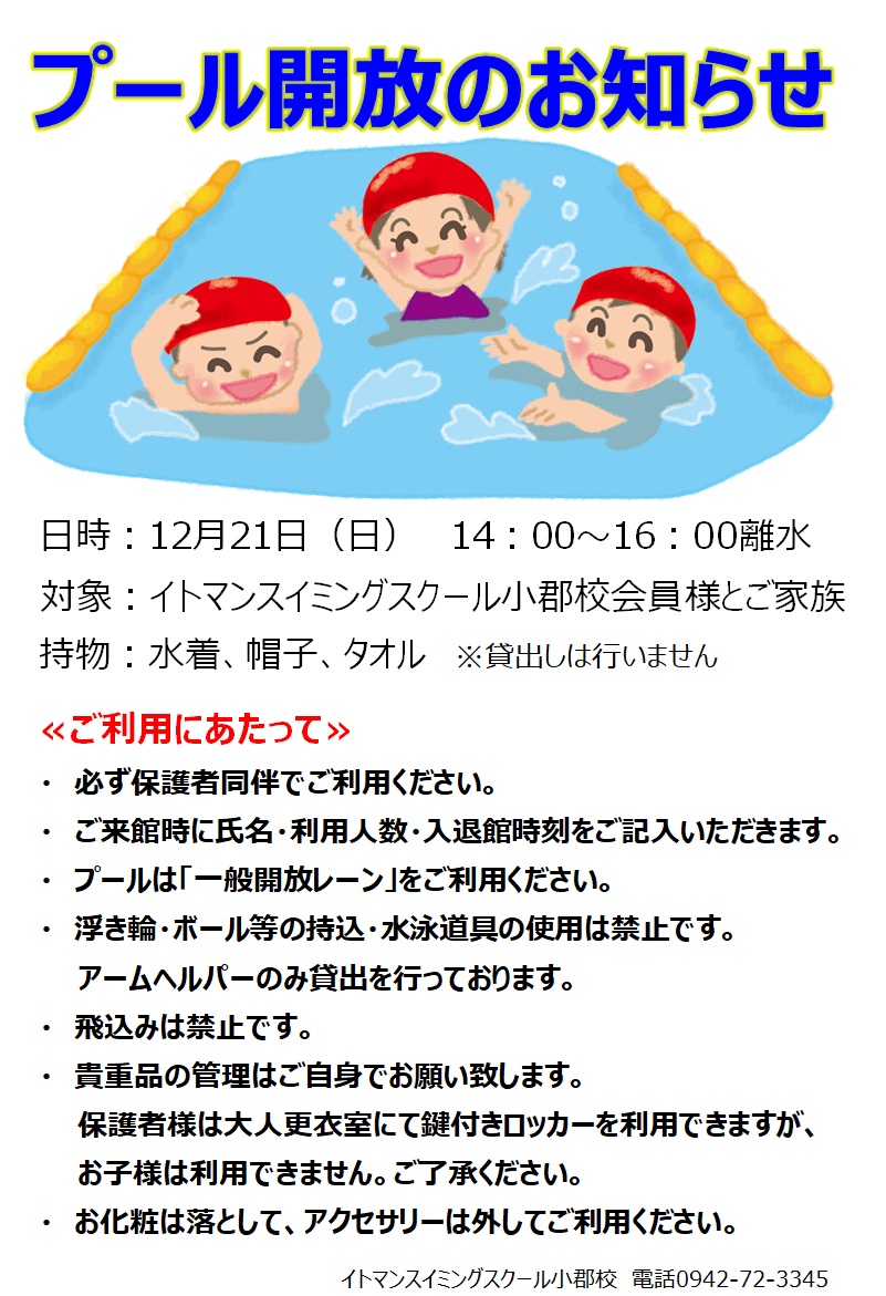 【12月・1月開催】はじめての体験教室 イトマンスイミングスクールスクール小郡校