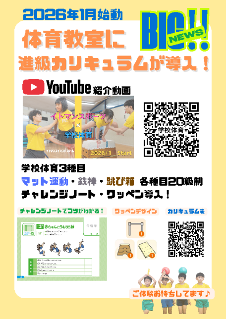 学校体育教室は1月より新しいカリキュラム内容で実施