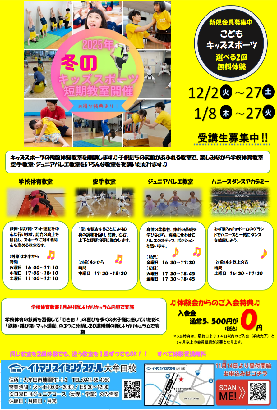 同じ教室を2回体験でも、違う教室を1回ずつでもOK!!