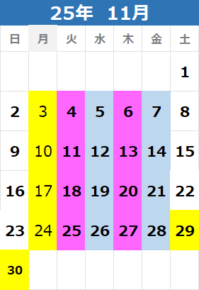 【11月期日程】下記の表をご覧ください。※各月内で2回利用をして頂きます