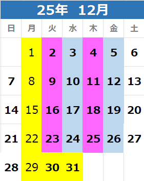 【12月期日程】下記の表をご覧ください。※各月内で2回利用をして頂きます
