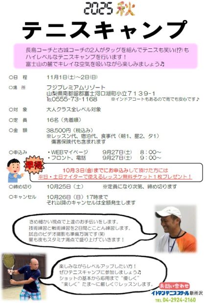 コーチは春に続き古城コーチ&長島のペアで行います。