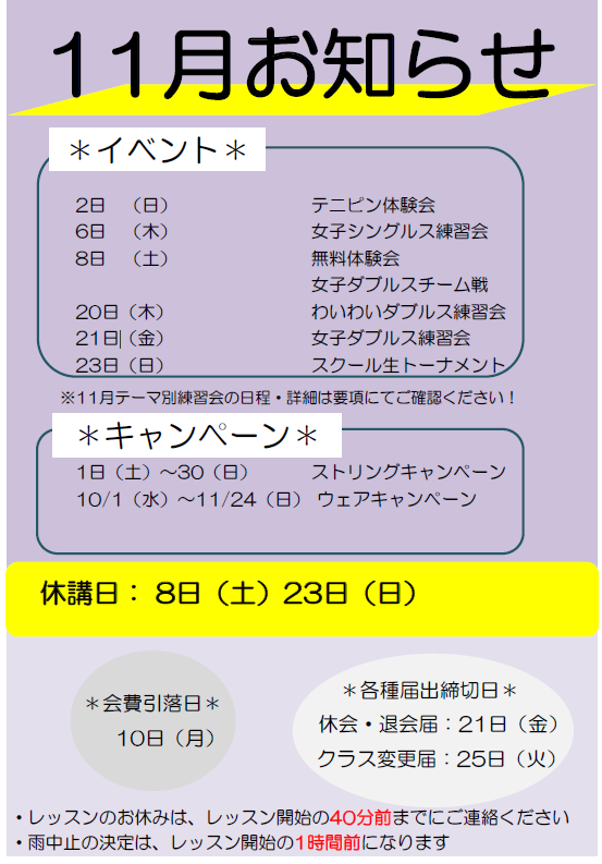 ユースクラスの皆さんは、長くラリーをつなげたり、相手のいないところを狙ってポイントを勝ち取ったり、スライスやドロップショットを混ぜるなど普段レッスンで練習している成果を出せた人も多かったのではないでしょうか!?