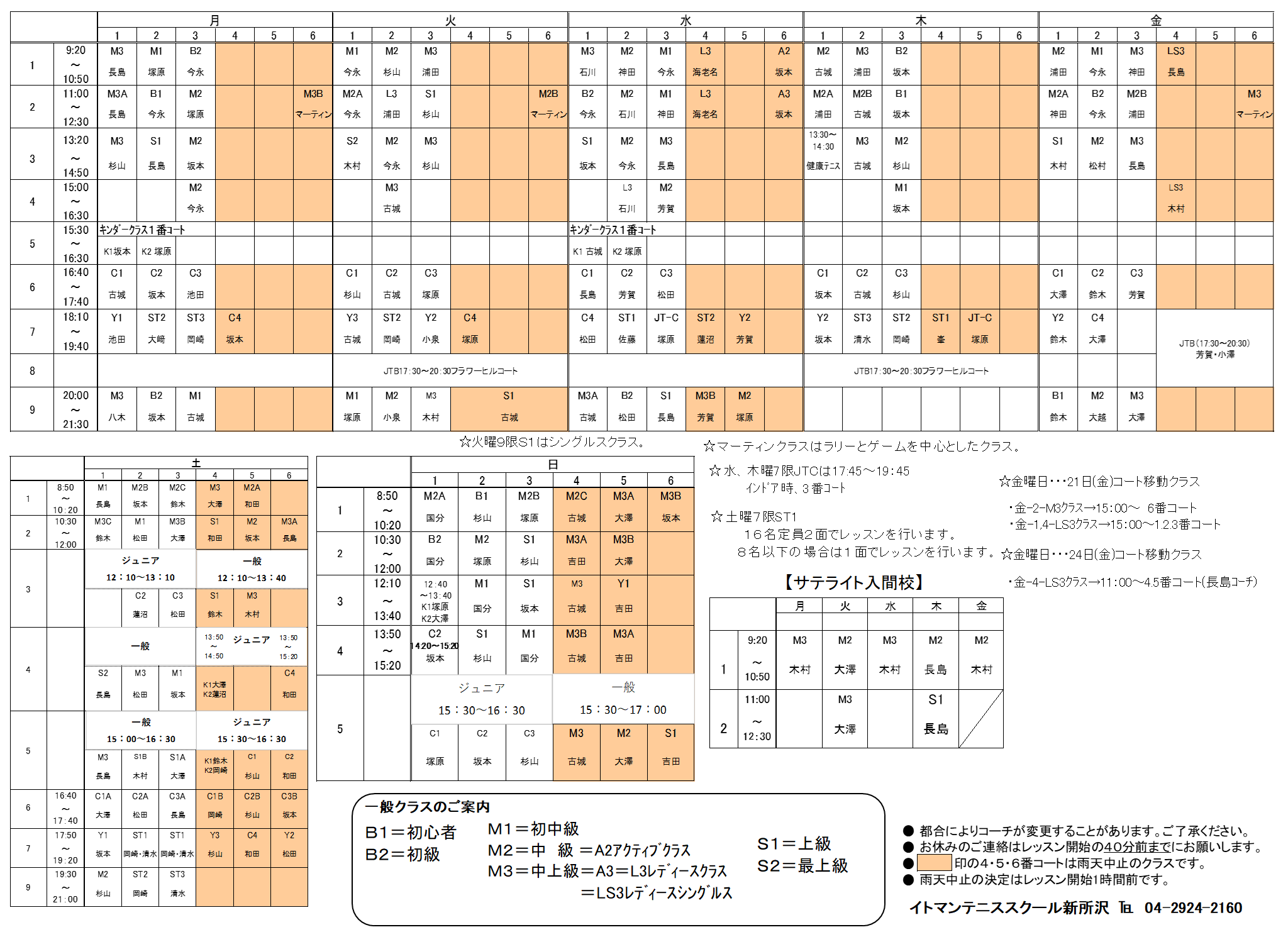 レッスンスケジュール