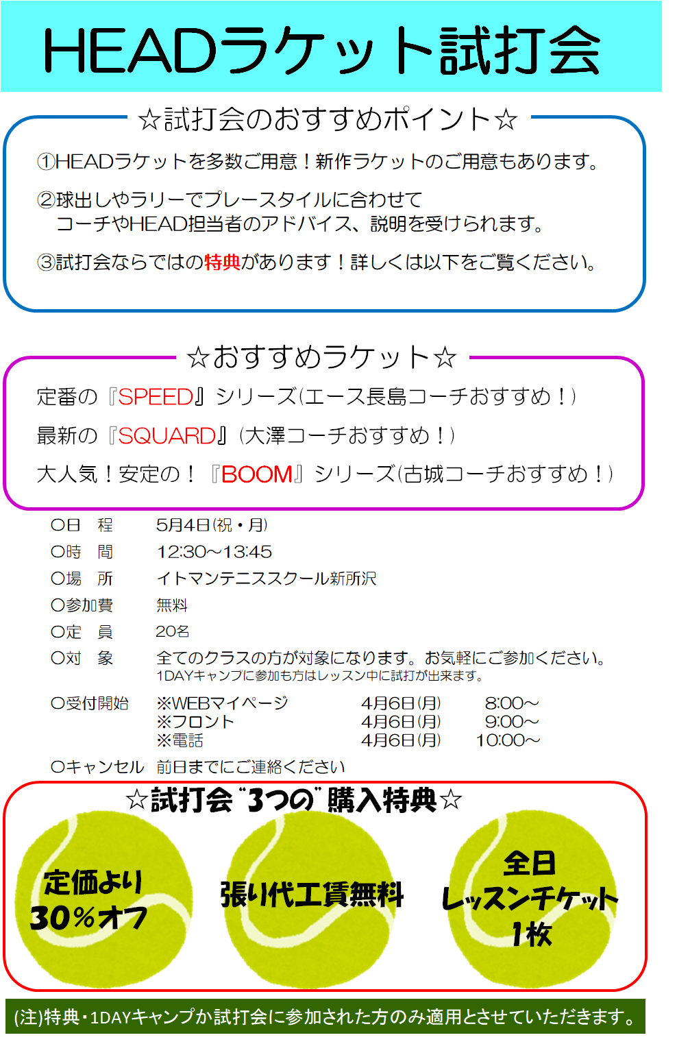 当日はHEADのスタッフが皆さんのラケットなどのご相談にも対応してもらえます。