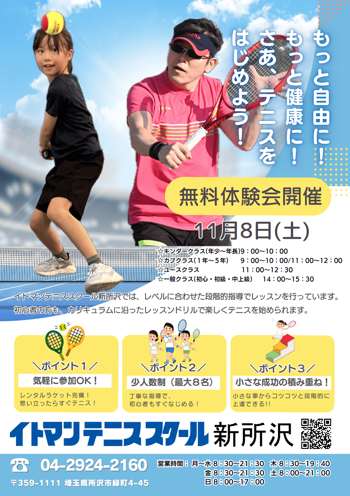 無料体験会へのご予約はお電話にて承っておりますので、参加ご希望の方は04-2924-2160までお気軽にお電話ください!!