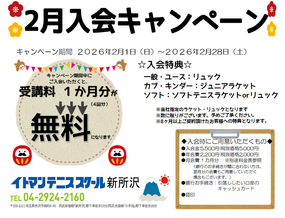 イトマンテニススクール新所沢では、