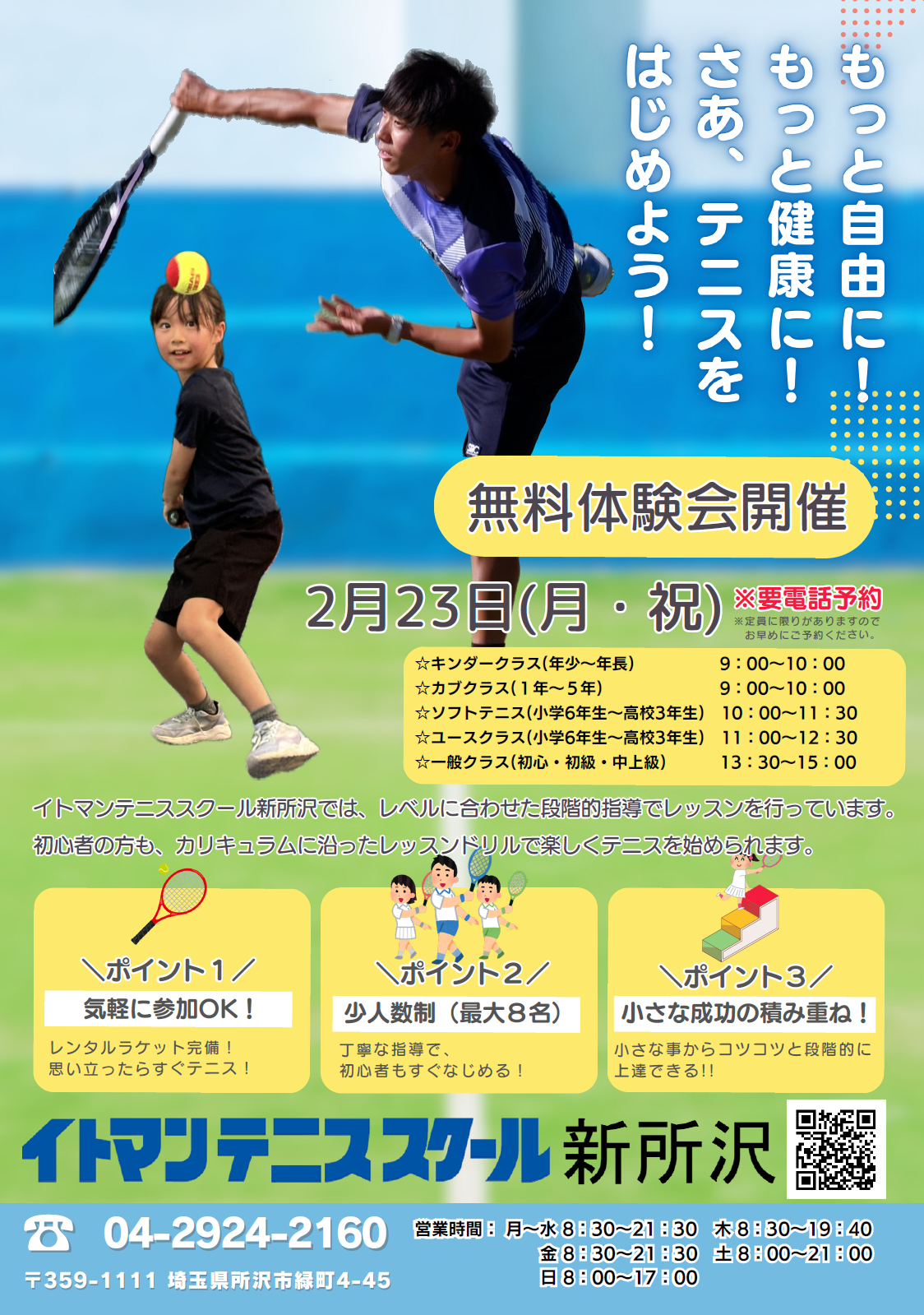 無料体験会へのご予約はお電話にて承っておりますので、参加ご希望の方は04-2924-2160までお気軽にお電話ください!!