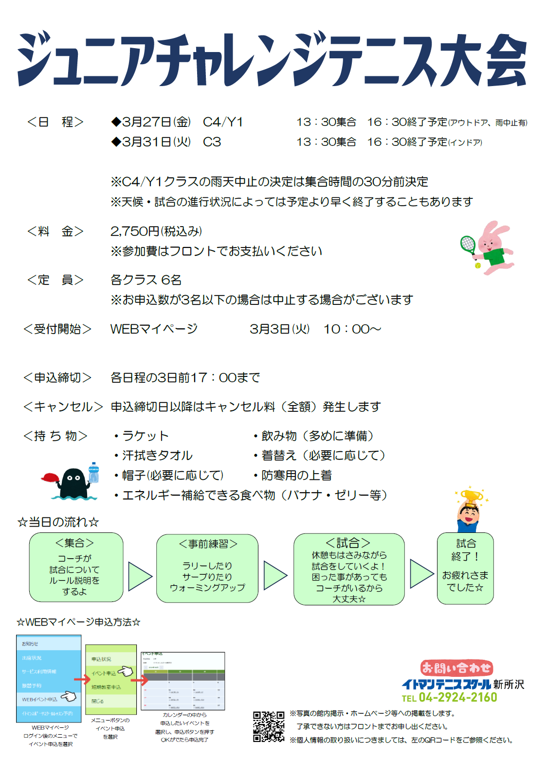 C3・C4/Y1クラスを対象としたジュニアチャレンジテニス大会のお知らせです!