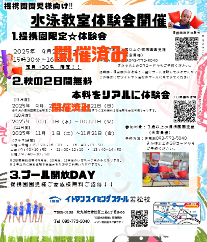1. 9月20日(土)の体験は提携園園児様のみの体験教室となります。