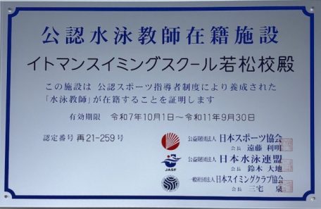 昨年10月に、継続して「公認水泳教師在籍校」の認定を受けました。