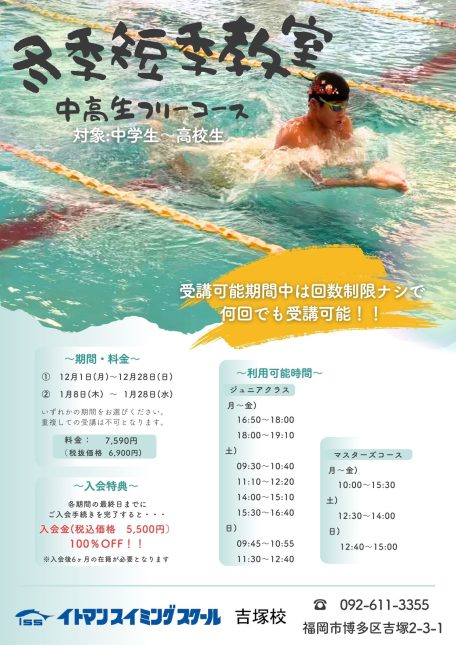 中学生、高校生を対象に泳ぎ放題のコースです!