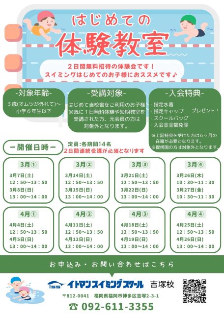 ●はじめてイトマンスイミングスクール吉塚校(当校舎)をご利用のお子様